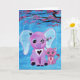 Forget Me Not Pink Elephant Cat Cherry Blossom Art Card