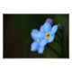 A macro photograph of delicate blue and yellow forget-me-not blossoms, captured in late afternoon sunlight during springtime.