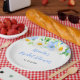 This beautiful and elegant plate features watercolor blue forget-me-nots, daisies and foliage. The text combines handwritten script and serif fonts for a stylish and modern look. This is perfect for a spring or summer rustic bridal shower.