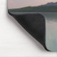 A tropical island scene late in the evening with the sun shining through the clouds. A pirate ship sails by on this mousepad.