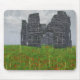 A 3D scene created in Vue, depicting the site of an ancient battle, with only the crumbling ruins of a mediaeval stone tower and red flowers in the grass to commemorate it. The falling rain and soft watercolor effect enhance the sadness of the hilltop scene.