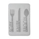 The Fork Knife Spoon design is perfect for anyone who loves to spend lots of time in the kitchen or place your cutlery and silverware on the table. Whether you consider yourself a cook or a chef, your love of food and the kitchen will show with this design. The fork, knife and spoon have a contemporary look and are in a light grey colour. Each of the three utensils is then labelled with the name of that utensil. Show your love of food, eating and cooking with the contemporary and modern looking Fork Knife Spoon graphic.