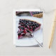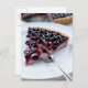 Fork slicing blueberry pie on plate postcard