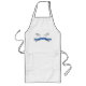 Great looking white chef's apron, with graphics of a crossed silver tone fork and spoon, with a blue banner, across the middle. White text, on the banner, is fully customisable to read what ever you want. Great apron for professional chefs, restaurants, bakeries catering services, or just for at home, in your own kitchen.