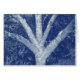 A photo of a tree with fanned out forked branches with a cyanotype effect.