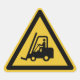 Triangle shaped yellow warning sign. Warning: Fork lift trucks and other industrial vehicles.