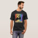 I give wanted to give this a 4 instead of a 5 because these Basic DARK T0shirts run unexpectedly SLIM or Narrow. Which is great if you do not have a potbelly, but I have a paunch. It isn't the shirt's fault that I've got a beer belly. The design and shirt itself is a quality cotton shirt. The color is more of a deep purple, but still a very pretty color. The Basic DARK T-shirts run a bit SLIMMER than the Basic Ts. The neck is a fraction narrower (or seems to be narrower) also. I'm a paunchy middle-aged woman and my neck is 12 inches (31cm) thick and the neckline fell about the same as in the photo of the man, and I had the desire to tug it a bit. So if you're a thick necked man or like loose shirts, be aware these are slimmer shirts. Once I get rid of my lockdown paunch it'll look great. The shirt washed well in cold water with no apparent bleeding. We don't have a dryer, so it hung dry. Did not shrink. Love the colors and the design. The design looks smaller on my shirt than it does on the model on-line. But still, it looks good on the shirt. The printing looks as it does on the model, just the size seems fractionally smaller. Washed garment in cold water, hung dry and design appeared unaffected.