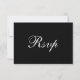 These elegant and modern wedding RSVP response cards feature a black and white with a classic layout and formal calligraphy. The back of the card is solid black with the word "Rsvp" in white calligraphy as a decorative element. This response card is perfect if you prefer to send a traditional, mail-in version to some or all of your guests.