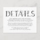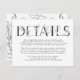 Formal Black Floral Letters Wedding Enclosure Card for extra details - a Hand drawn floral detail wedding stationery design with flower sketched embellishing the word 'DETAILS', with script handwriting text for the names.