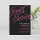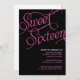 This elegant black and pink sweet 16 invitation is fully customisable. Invites are black with the words "Sweet Sixteen" in pink formal lettering. For many girls, having a sweet sixteen party is second only to their plans for their other "big day". Whether you are planning a sweet sixteen party, or a Quinceanera, a formal invitation is classy way to gather friends and family. This modern design makes the perfect compliment to a sweet 16 party that is sure to be memorable.