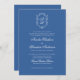 Formal Blue Leaf Monogram Crest & Script Wedding Invitation