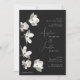 These elegant 5" x 7" wedding invitations feature hand drawn dogwood flowers in white and pale dusty rose on a black background in a formal design with the placeholders, "Please join," parent names, "in celebration of the marriage of their daughter," couple first and last names, day of the week, date, time, venue, venue address and "reception to follow."