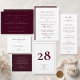 The layout includes space for guest names, attendance response, and dinner selection, creating a practical and beautifully coordinated card for your wedding suite. The deep burgundy colour adds warmth, depth, and formality, making it especially suited to elegant evening weddings and traditional receptions.