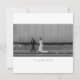 Express your gratitude with timeless elegance using this formal black-and-white wedding thank-you card. Designed with a refined and classic aesthetic, this card features a full-width monochrome wedding photograph paired with clean, understated typography. The layout highlights sophistication and simplicity, allowing your photo and message to take center stage.