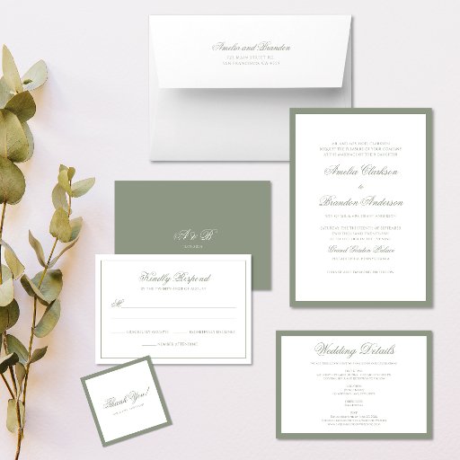 The Formal Classy Sage Green Border Script Wedding RSVP Card exudes timeless elegance with a refined sage green border and graceful script typography. Perfect for spring, garden, or rustic weddings, this sophisticated design beautifully complements your wedding suite.
