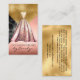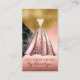 Elegant wedding dress seamstress business card, with watercolor artwork of a fancy long gown, against a marbled, and pink and gold foil looking background. Personalize the text to suit your business needs. A lovely stand out card for your tailoring business.