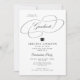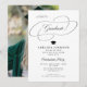 Stylish calligraphy script black and white senior high school, college or university graduate photo graduation party invitation template with a grad hat. ++++++++++++ Easy to personalize with your custom photo, the graduate's name, graduation year, school name, and graduation party details!