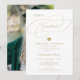 Stylish calligraphy script gold white senior high school, college or university graduate photo graduation party invitation template with a grad hat. ++++++++++++ Easy to personalize with your custom photo, the graduate's name, graduation year, school name, and graduation party details!
