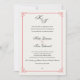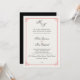 Our formal but modern wedding invitation in chic black and white with a touch of red features the bride and groom's monogram across the top in beautiful calligraphy script typography. Personalise with your ceremony details beneath. Includes space for the ceremony timing and church or venue address, along with information for the bride and groom's name with their families. Cards reverse to solid black. A chic design in black and white with a touch of red for modern couples and elegant events.