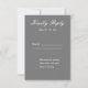 Featuring a chic grey and white colour scheme, this wedding response card adds a touch of sophistication to your wedding stationery. Its clean lines and understated design provide a perfect complement to a modern or classic wedding theme. Ample space is included for your guests to RSVP, combining elegance with convenience. Personalise it to reflect your unique wedding style and create a lasting connection with your guests.