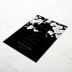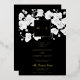 Branches of white orchids, hand-drawn in graphite pencil, intertwine in this simple but sophisticated, elegant yet chic, monogram wedding invitation. The branches of orchids form a stylish floral wreath that looks formal but modern. A contemporary classic design for black tie weddings with an organic, natural feel. It features elegant script calligraphy and real foil, on a black background.