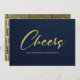 FORMAL NAVY FAUX GOLD MINIMAL CALLIGRAPHY CHEERS HOLIDAY CARD