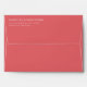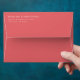 This wedding envelope features a minimalist design with a solid coral background and centred text in a clean, modern sans-serif font. The layout is simple and elegant, utilising ample negative space to highlight the names and address printed on it. The monochromatic colour scheme and straightforward typography create a sophisticated and formal tone, perfect for conveying essential information with clarity and style. Ideal for couples seeking a contemporary and unembellished look for their wedding stationery.