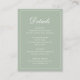 Traditional style sage green wedding enclosure card featuring a simple design with "Details" in an elegant calligraphy inside of a thin border. The template allows ample room for you to share important information about your special day. This classic design is perfect for a formal wedding.
