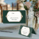 PLACE CARDS DARK EMERALD FOREST GREEN AND WHITE WITH GOLD WEDDING RECEPTION - you will hand write your guest's name and table number or name on the lines provided. Elegant, formal dimensional looking Victorian baroque frame with your Table assignment & your message to your guests with Bride and Groom's names. Can be customised to any event or occasion. All artwork was graphically designed by internationally licensed artist and designer, Audrey Jeanne Roberts ©