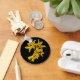 This keychain features golden yellow forsythia flowers on a pure black background. Forsythias are one of the earliest blooming shrubs in spring. When this flower shows its bright gold petals in the garden, we know that winter is gone for another year.
