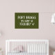 Stencil style white font on Army green background.