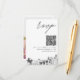 Classic minimalist script wedding RSVP enclosure card personalised with your information and a QR code. Change the QR code link easily in the personalisation field without having to separately create and upload a new one. Enter the Zazzle design tool for further customisation such as text placement or to remove the photo on the back. Be sure to compare the different paper types to select your favourite texture.