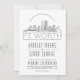 A unique wedding invitation for a marriage taking place in the beautiful city of Fort Worth, Texas. This invitation features a stylised illustration of the city's unique skyline with its name underneath. This is followed by your wedding day information in a matching open lined style. On the reverse side of the invitation is a deep grey colour to complement the look and feel. All individual elements of the invite card are unlocked so feel free to change or add any details necessary by using the customisation function. You can add a photo to the reverse side and add a black and white filter to it. Also, you can experiment with the many unique thicker paper types and cuts available. Matching RSVP cards, address labels, stickers, tote bags, and more are available. Have fun being creative and making it your own!