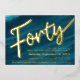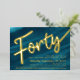 Forty abstract aqua teal green blue art background with a gold foil text or your own foil colour. Personalise this 40th birthday party script art milestone birthday invitation with your own birthday party event details, and a photos of your birthday girl on the reverse. Other years, colours and matching items are available. © Original design by Sarah Trett for www.mylittleeden.com on Zazzle.
