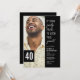 Create unforgettable moments with our modern 40th birthday party invitations! Chraacterised by a sophisticated black background and an amusing saying - 'It took forty years to look this good!', these invites also offer a convenient text template you can customise easily. Add in the celebrant's photo, and you've got an invitation that’s as extraordinary as the milestone it’s celebrating!