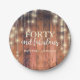 Forty & Fabulous Rustic Wood String Light Birthday Paper Plate