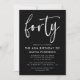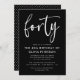 Forty | Modern 40th White on Black Birthday Party Invitation