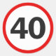 Simple graphic of a road sign depicting a speed limit of forty miles an hour. Makes a great design for a fortieth birthday present. Image available on various gifts and products.