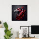A striking artwork capturing the head of a majestic condor like a fossil in granite. The abstract art style in vibrant blood red and charcoal creates a dramatic scene. With a close-up, zoomed perspective, the portrayal evokes a sense of awe, showcasing the regal beauty of this magnificent bird frozen in time.