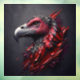 A striking artwork capturing the head of a majestic condor like a fossil in granite. The abstract art style in vibrant blood red and charcoal creates a dramatic scene. With a close-up, zoomed perspective, the portrayal evokes a sense of awe, showcasing the regal beauty of this magnificent bird frozen in time.