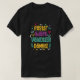 I give wanted to give this a 4 instead of a 5 because these Basic DARK T0shirts run unexpectedly SLIM or Narrow. Which is great if you do not have a potbelly, but I have a paunch. It isn't the shirt's fault that I've got a beer belly. The design and shirt itself is a quality cotton shirt. The color is more of a deep purple, but still a very pretty color. The Basic DARK T-shirts run a bit SLIMMER than the Basic Ts. The neck is a fraction narrower (or seems to be narrower) also. I'm a paunchy middle-aged woman and my neck is 12 inches (31cm) thick and the neckline fell about the same as in the photo of the man, and I had the desire to tug it a bit. So if you're a thick necked man or like loose shirts, be aware these are slimmer shirts. Once I get rid of my lockdown paunch it'll look great. The shirt washed well in cold water with no apparent bleeding. We don't have a dryer, so it hung dry. Did not shrink. Love the colors and the design. The design looks smaller on my shirt than it does on the model on-line. But still, it looks good on the shirt. The printing looks as it does on the model, just the size seems fractionally smaller. Washed garment in cold water, hung dry and design appeared unaffected.