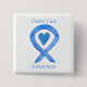 Foster Care awareness cause uses a blue ribbon. The awareness ribbon pin features the painting of a blue awareness ribbon with a heart on a custom button pendant. The awareness pendant notes "Foster Care Awareness". The blue awareness ribbon art lapel pins or buttons can be customised with personalised messages to make great cause buttons for fundraiser pendants, awareness pin gifts, or other special pendant events or awareness lapel pin for the cause's occasions.
