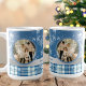 Si buscas algo original y elegante, esta taza es ideal para crear un recuerdo inolvidable para quien la reciba. Tiene tonos azul, blanco y plateado, con un diseño de cuadros y copos de nieve estampados, lo que la hace clásica y sofisticada. Lleva el mensaje "¡Feliz Navidad 2025!", pero puedes cambiar el año según tu preferencia, así como el idioma. Recuerda sustituir las fotos de muestra por las tuyas. También puedes agregar el nombre de tu familia, ya sea el apellido o los nombres de quienes aparecen en las fotos, o dedicarla especialmente a quien recibirá este hermoso regalo.