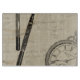 Looks like someone was taking a lot of notes! This contemporary painting of fountain pens and a watchface illustrate the loss of time to the various mundane, but important, activities in our lives. Get your copy today!