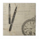 Looks like someone was taking a lot of notes! This contemporary painting of fountain pens and a watchface illustrate the loss of time to the various mundane, but important, activities in our lives. Get your copy today!