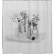A still life of four bottles filled with white flowers and presented in black and white. Photography and digital artwork by Sandra Foster © Sandra Foster Designs - Zazzle.