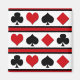 Set of card suit icons isolated on black, red and white striped background