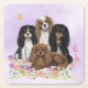 Four Cavalier King Charles Spaniels in Flowers Square Paper Coaster