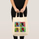 The printing came out very well, better than I had anticipated. The natural color fabric is sturdy with strong seams and comfortable handles. This tote fits easily over my shoulder. As it is filled, the bottom flattens out--very cool! I would buy this product again. This grocery tote holds a lot of groceries! The image quality was very good. The colors were a little darker than I had expected. The darkness may have been due to printing on a natural color fabric rather than on white. The cat design is attractively centered on the tote. The spirit of the design is very lively, just as it appears on the Zazzle website.