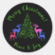 Four Deer & a Merry Christmas Tree Peace & Joy Classic Round Sticker